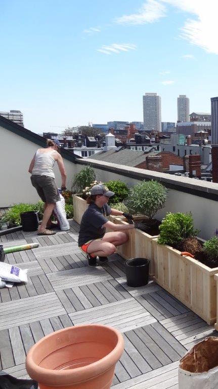 Boston Rooftop Garden planting crew