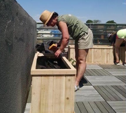 Boston Rooftop Garden - filling the planter boxes