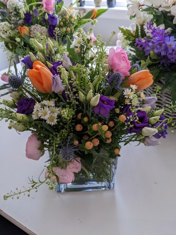 If you are experiencing the winter blahs I would encourage you to head to a local grocery store and pick up a few bundles of flowers. Go home, turn on the music and start creating. I know you will love playing with flowers as much as I do. And if you are ever in need of an arrangement, please reach out to me. I like to think that my florals, like my container designs, are one-of-a-kind.