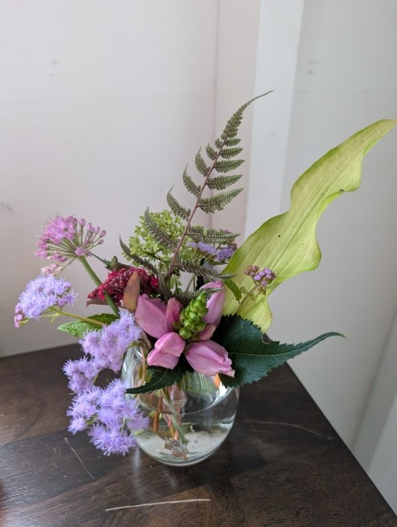 I confess during the bleak winter months I go a bit stir crazy having nothing to create. So a few years back I started playing with flowers. I put together arrangements for clients and neighbors and found out that I loved the process. The same design principles I incorporate with my containers – scale, balance, harmony, and contrast- work with floral design. Also, like container gardening, floral design can accommodate many different styles. Some arrangements are more linear and modern while others are more flowy and organic. Whether containers or floral design I love the fact that each arrangement I create is unique to my client and his/her aesthetic.